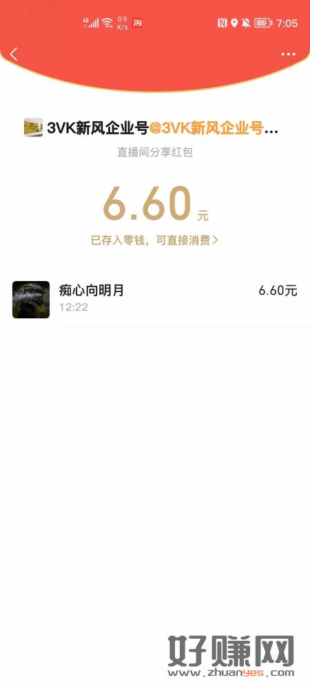 微信-发现-直播搜索3vk新风,分享直播间到朋友圈以及一个群聊,截图给企业微信(图3,第二天给6.6