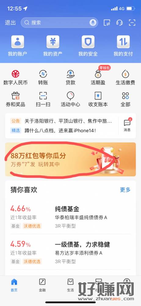 zfb在首页搜索民生之家,进去做任务抽取5个红包,保底2.8