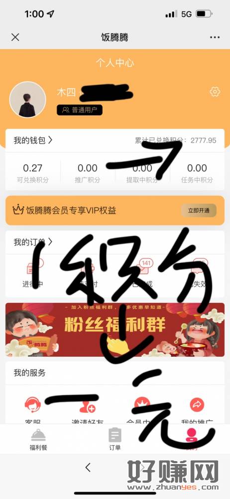 V扫码。不知道限不限地区 免费外卖返现一积分一快钱 有的外卖不花钱有的要几块 自己定