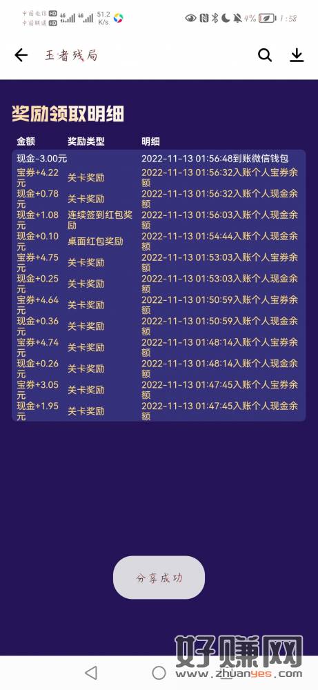 有腾讯应用宝的去,分享到QQ打开才有残局,普通打开没有,3大毛差不多