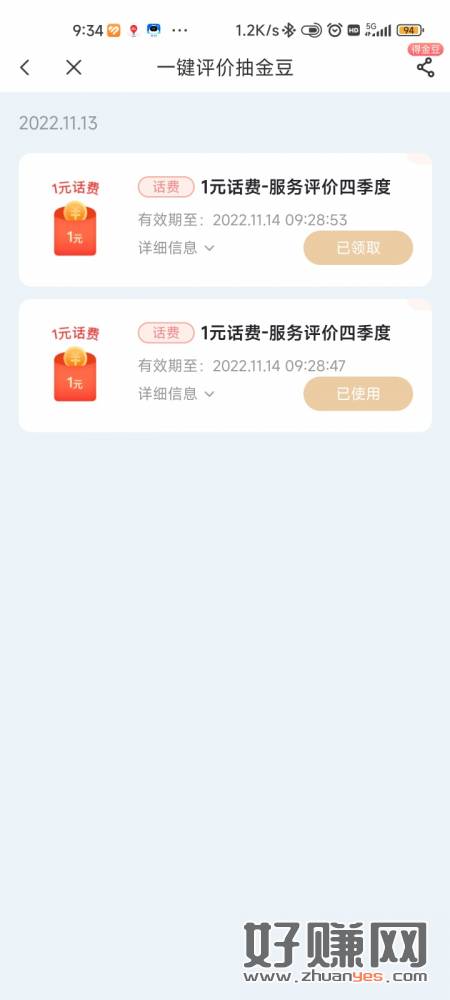 打开链接跳转电信APP完成评价返回抽奖必中话费