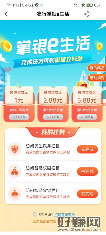 工行首页-点开选择地区分会-完成访问二个任务-给一个优惠券,