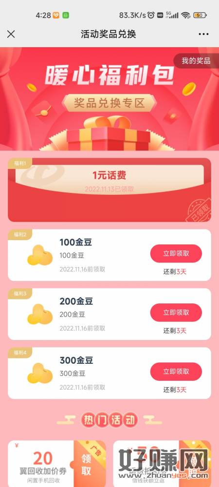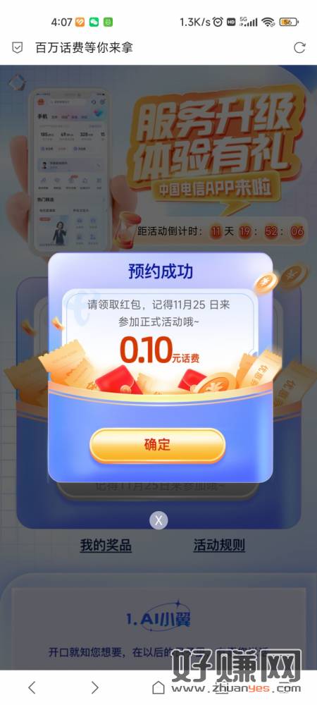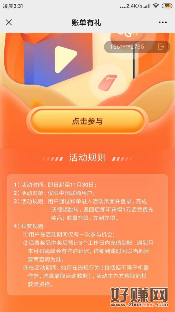 打开链接进入活动页面后登录完成跳转返回即可获得1元联通话费
