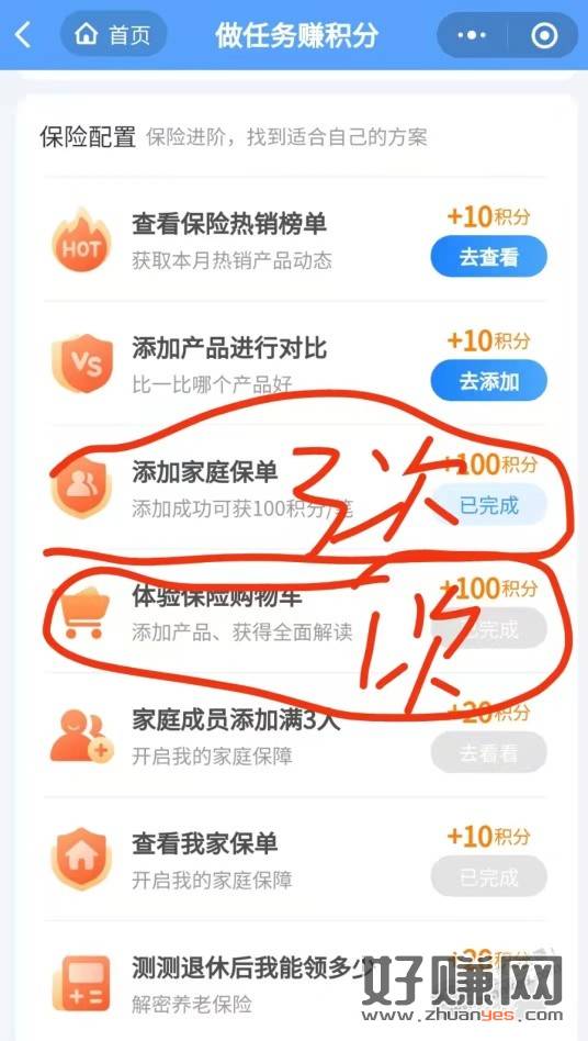家庭保单乱填三次 300积分 记得点领取