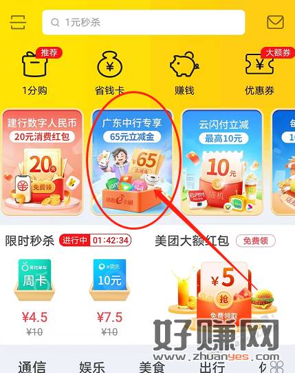 参与路径:蜂助手APP——广东中行专享65元立减金