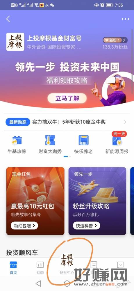 上投摩根基金财富号,粉丝中心,加自选,抽取 2.88,投1