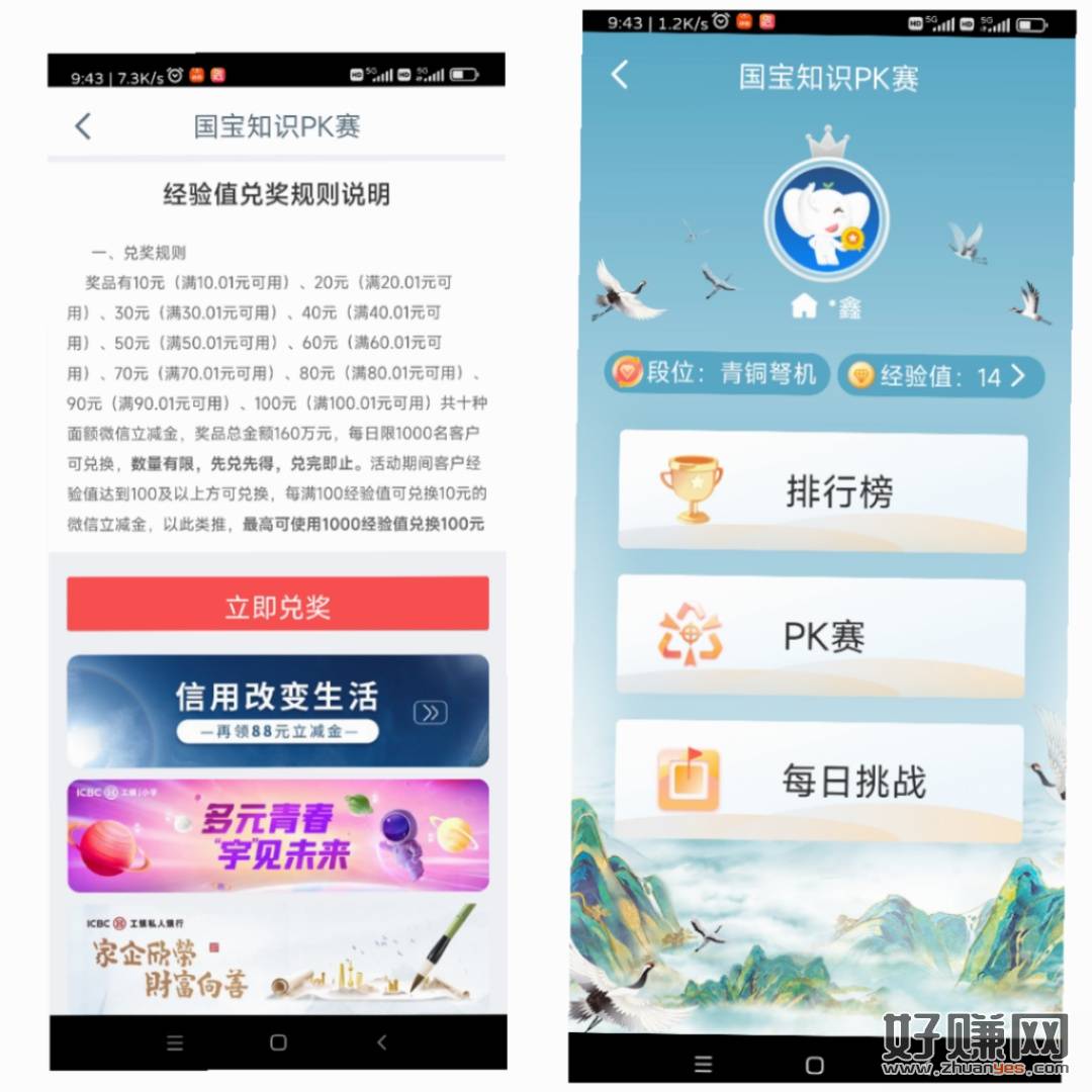 工行首页,答题兑换立减金,互相互得10经验值,玩的评论区