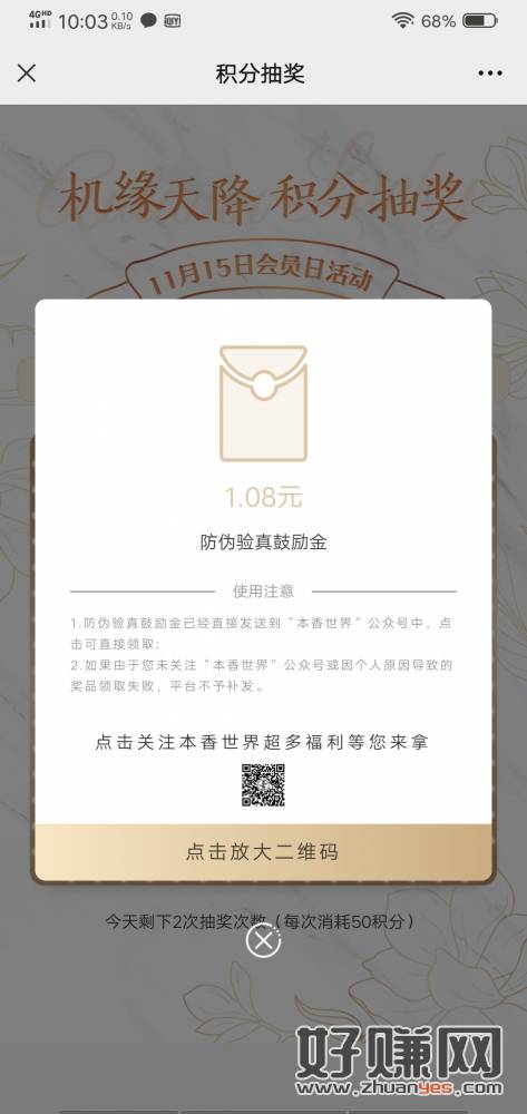 支付宝打开首页自动弹实盘活动红包1.08,应该是之前参加过的