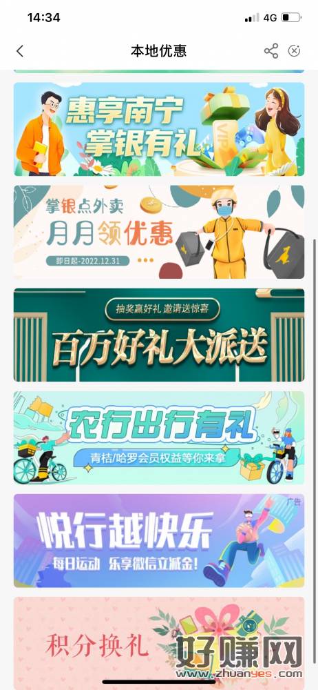 农行飞广西南宁,每两天5立减金,每天改一下步数加上pk可以抽3次奖,运气好基本两天就满5块钱了,最迟3天,飞过去顺便把上面的美团10元无门槛和百万好礼大派送的1.8立减金都领了,还有那个农行出行有礼可以做到1分钱7天5次哈罗或者青桔电车,不确定飞能不能领,愿意的就自己试一下