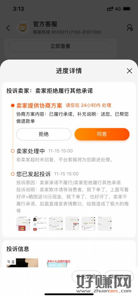 前两天发的0撸笔袋的收到货直接找客服仅退款,反10块变成3块