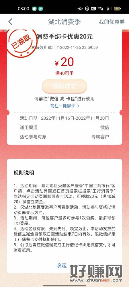 速度,工行飞湖北,有湖北卡的直接去,搜消费季,领40-20