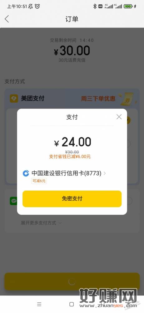建行美团充值话费30-6,刚需撸!!