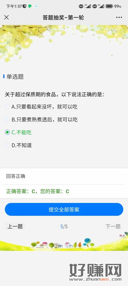 这活动有bug 答完五题 抽奖完 不要继续答10题的 返