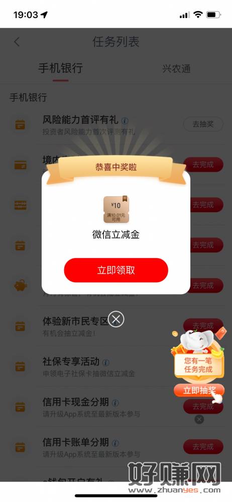 V扫|工行简单任务有小红包
