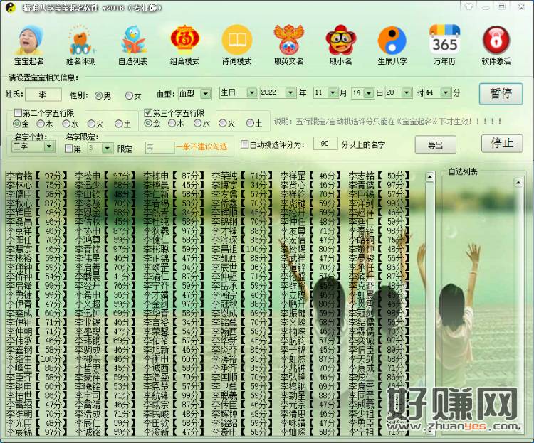 支持五行 还有取小名、取英文名等等好多功能 自己发掘