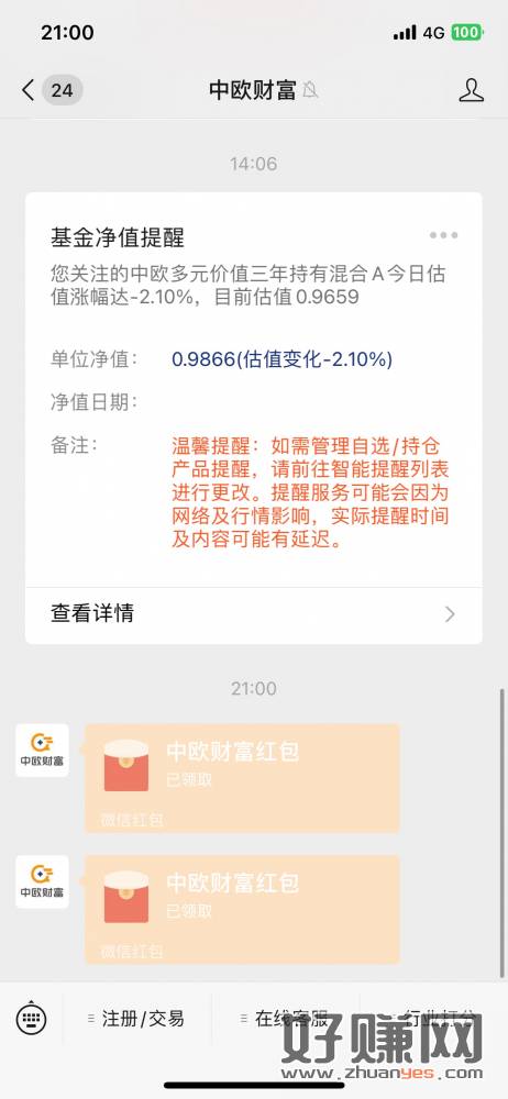之前填了中欧财富问卷的去看看到账了没 中欧财富app我的卡券