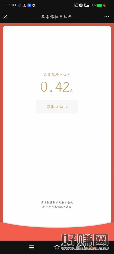 支付宝搜闲鱼,打开小程序有小红包,里面抽奖也有概率中0.5