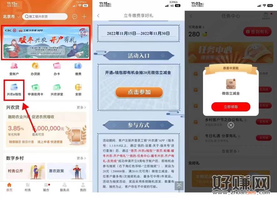 [ 工银兴农通开通抽20元立减金 ]新一期!应用商店下载“工银兴