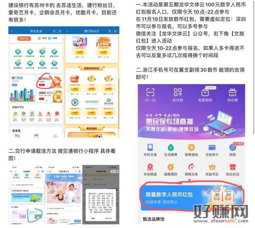 一.建行与龙华数币报名以及交行与翼支副活动 具体流程看图二.两个ek活动以及枝副宝微毛