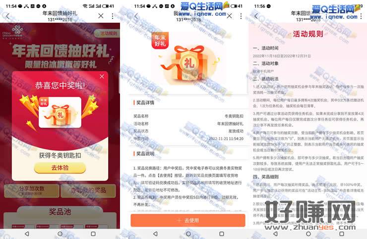 联通年末回馈抽好礼 亲测免费领取冬奥钥匙扣1个