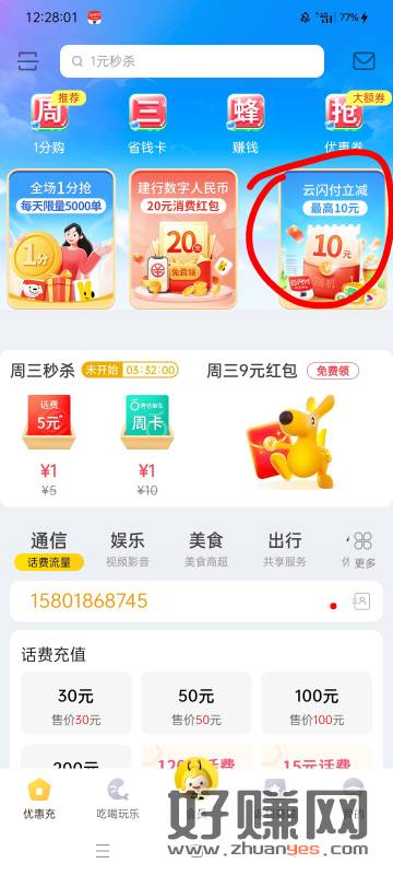 蜂助手首页横幅进去买20沃尔玛卡,银行卡留个十三十四块钱,不