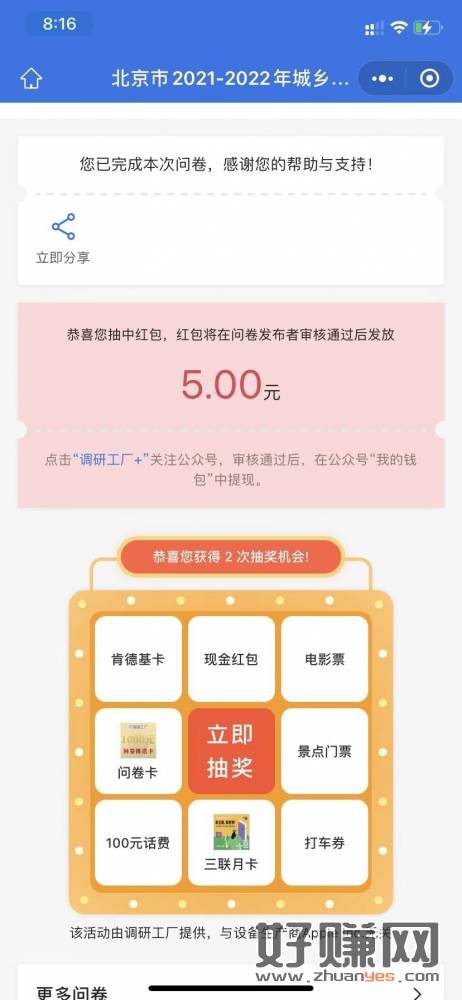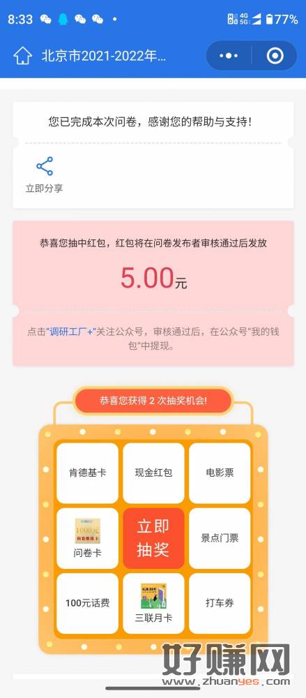 定位北京答问卷,不要选军人和学生,尽量选高工资一些的,不要乱选,审核后公众号提示提现