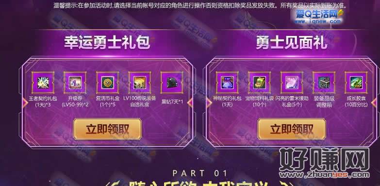 幸运用户可以领取一个免费的勇士礼包,里面包含7天黑钻