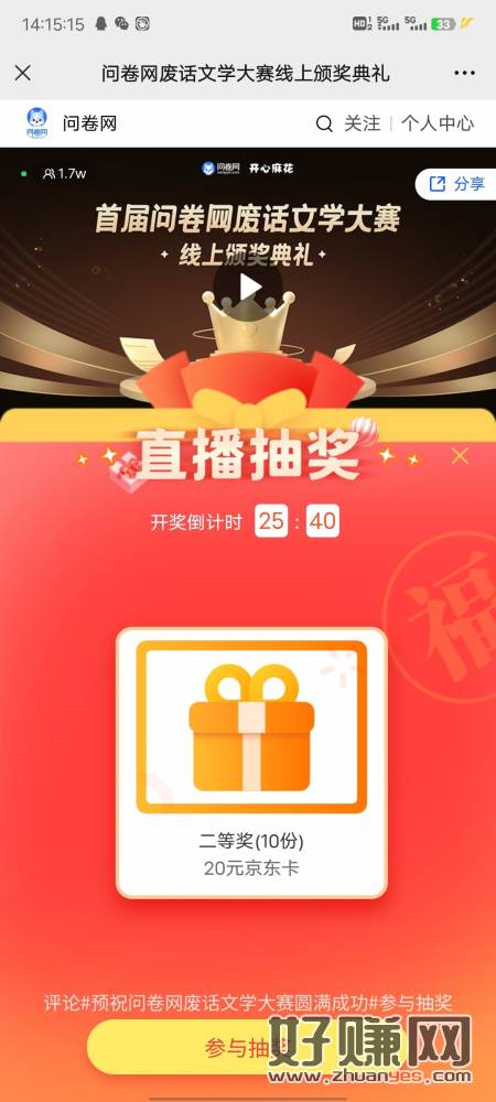 【问卷网废话线上颁奖典礼】微信打开进入直播间 有红包雨 有抽奖ek