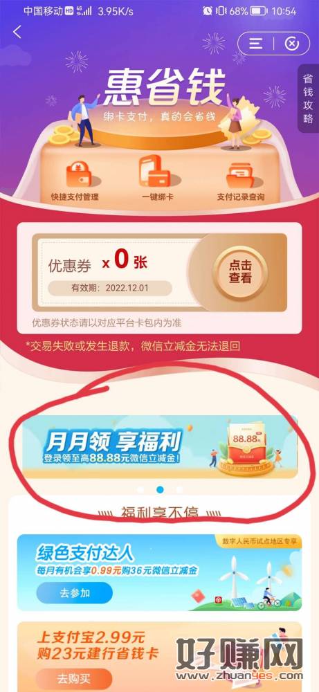进入建行,惠生活,入口如下图。本人脸黑中2.88