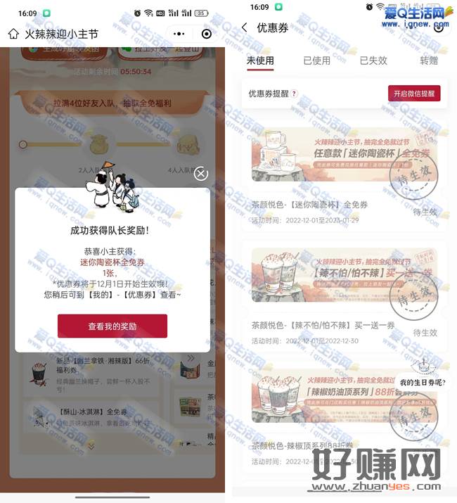 茶颜悦色组队抽全免周边 亲测中小茶书撸到9元