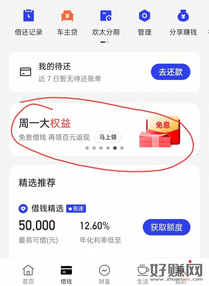 OPPO钱包周一借钱1000抽奖,保底3元,第二天还,利息1元以下,赚2+。开通了OPPO欢太借钱的去,未开通的无视。