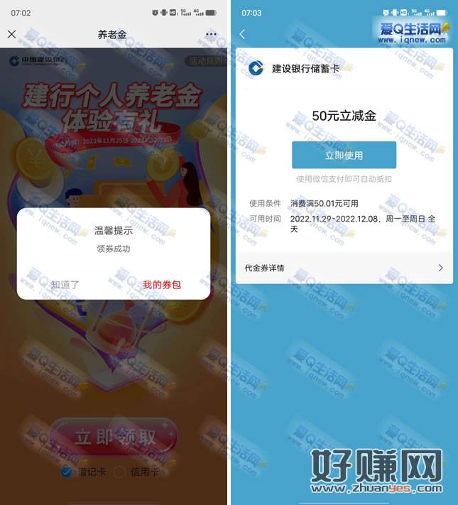 建行开个人养老金领50-160微信立减金 亲测50元微信立减金秒到