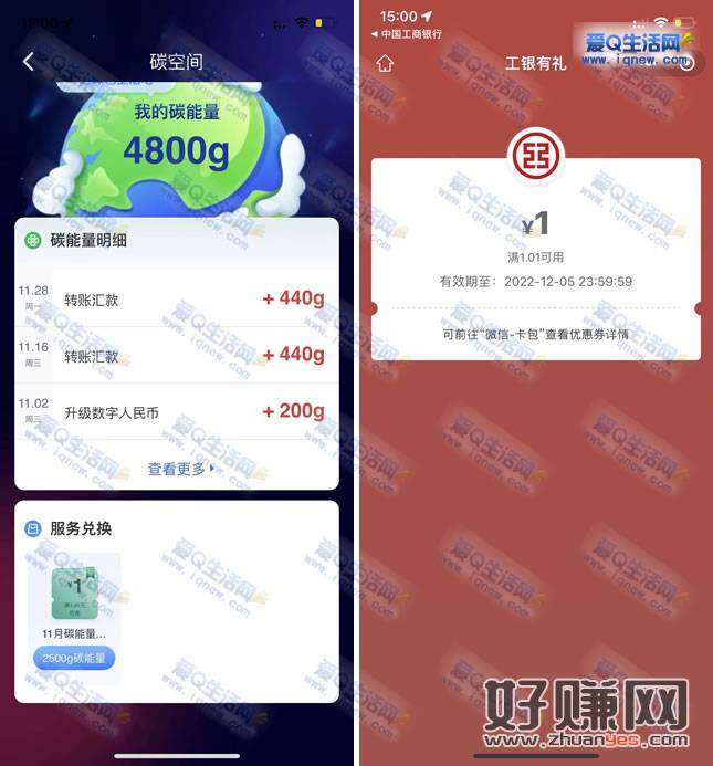 工行碳能量兑换1元微信立减金 亲测1元秒到