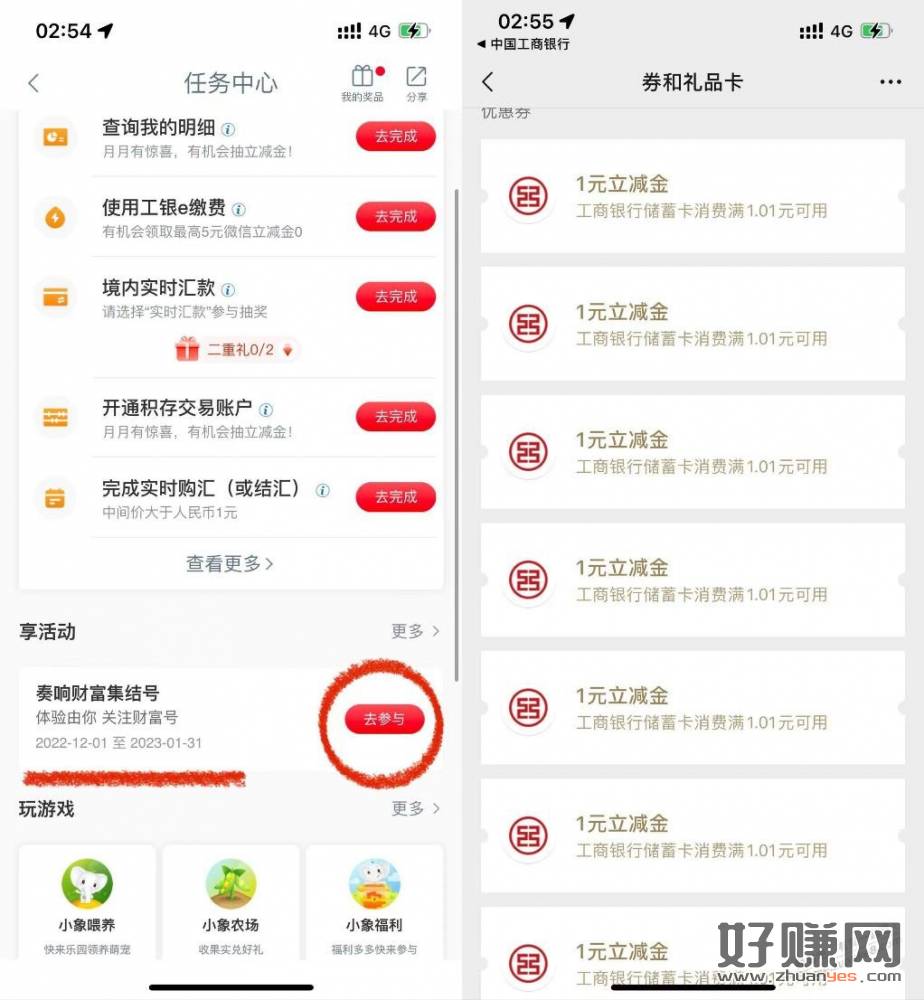 工行,任务中心,享活动关注后取关抽 大约10立减