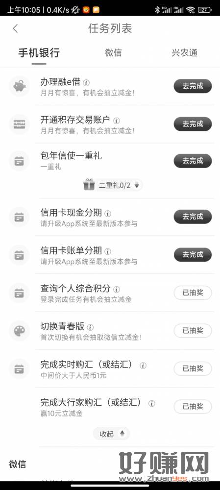 工行 搜结售汇 右上角选择人民币汇购 买200韩元 任务中心两个抽奖