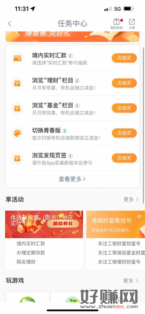 每天红包雨和浏览任务分享任务刷新 换立减金需要下载app