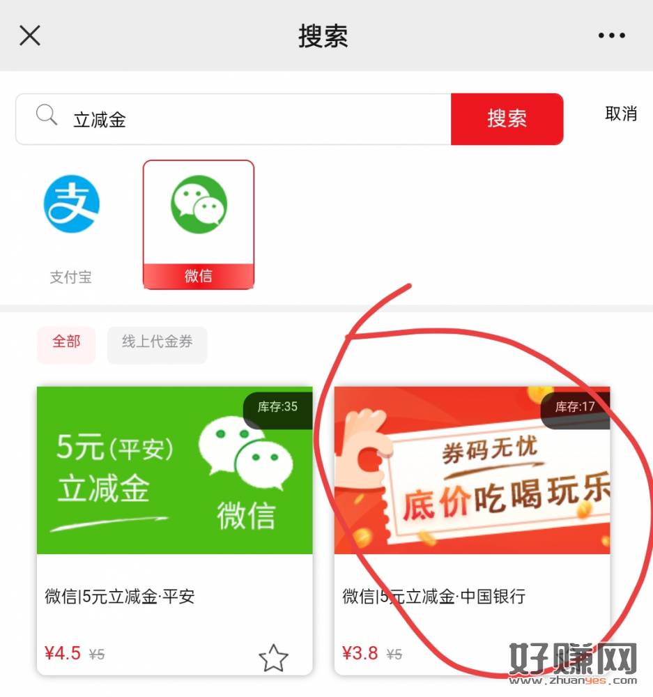 玖玖搜立减金,3.8买5元中国银行立减金,有卡的去。一个实名每个月买一次。