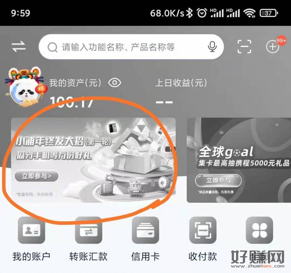 我抽到了1分钱实物,大家试试:浦发银行APP首页滚动栏