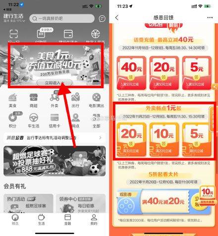 【建行生活准点抢30减20元外卖券】15点30分准时开抢!建行生活APP->首页横幅进入->下拉页面->准点抢30减20元/20减10元/6减5元外卖券