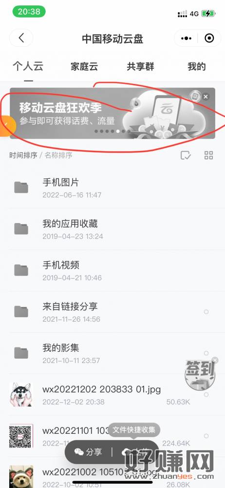 中国移动云盘小程序。领话费 不同地区东西不一样。自测。限中国移动
