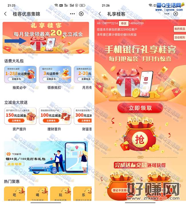 中行APP-生活-左上角手动定位【桂林】-点击【桂客有礼】-顶部滚动横幅【礼享桂客】领取微信立减金 现在显示领取失败 有耐心的多领几次试试