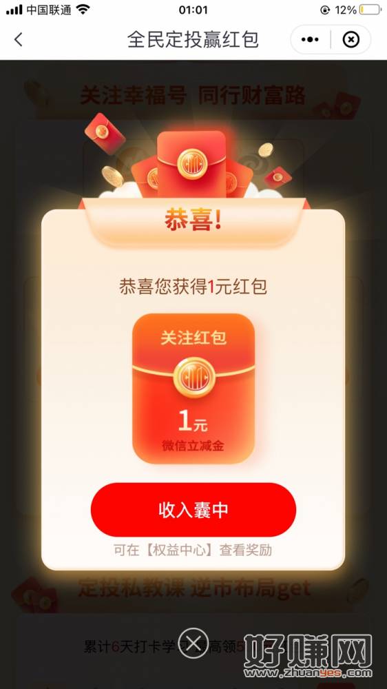 我开的电子户定投不了 只能做个关注任务 必中最低一