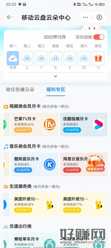 移动云网盘,300云朵换10美团,不建议点外卖,有天天神劵就