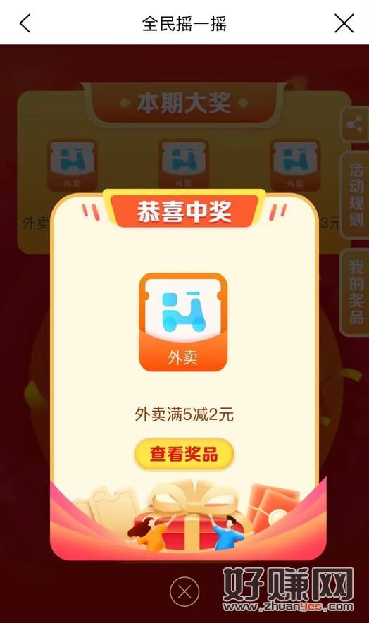 建行生活-切地区佳木斯,下拉全民摇一摇,抽外卖券,左上角直接
