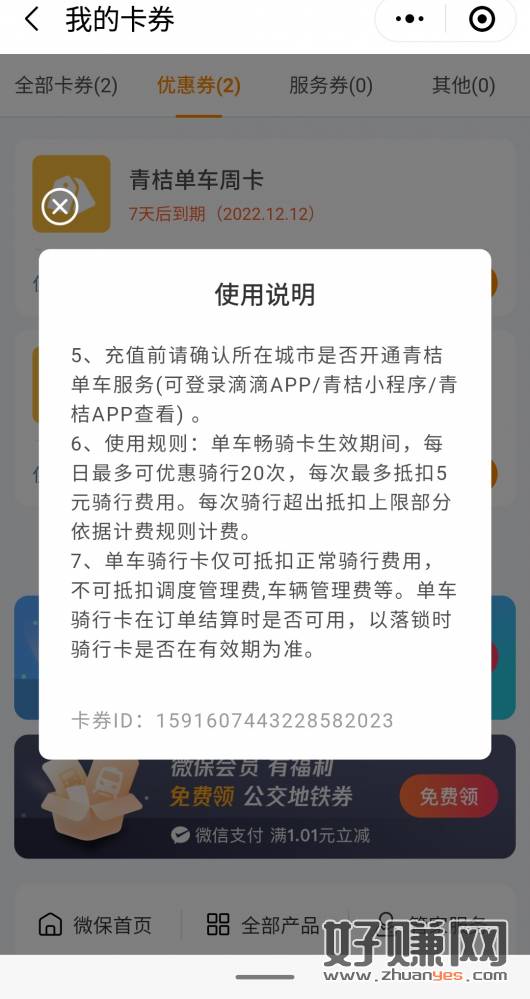青桔单车周卡免费领取 ,微保_我的_会员,下拉见达人计划活动