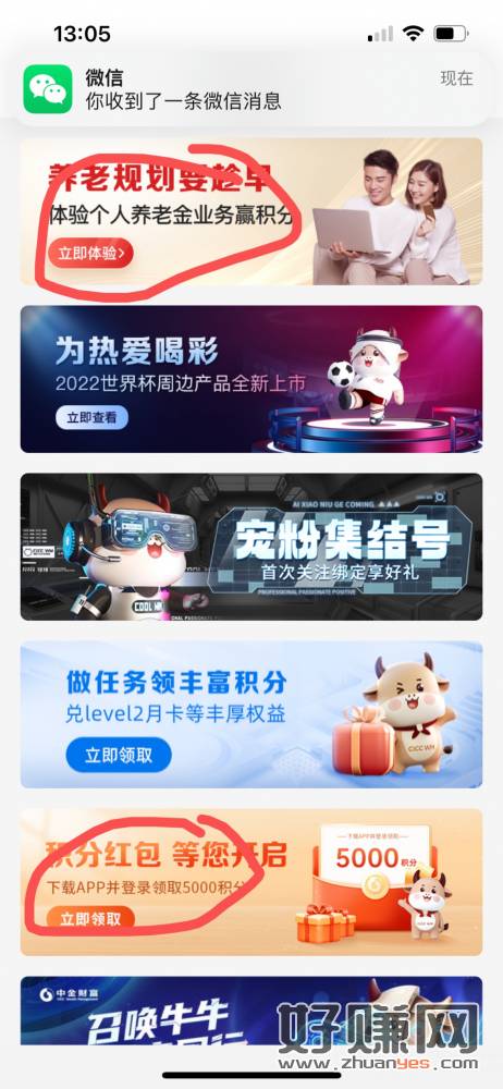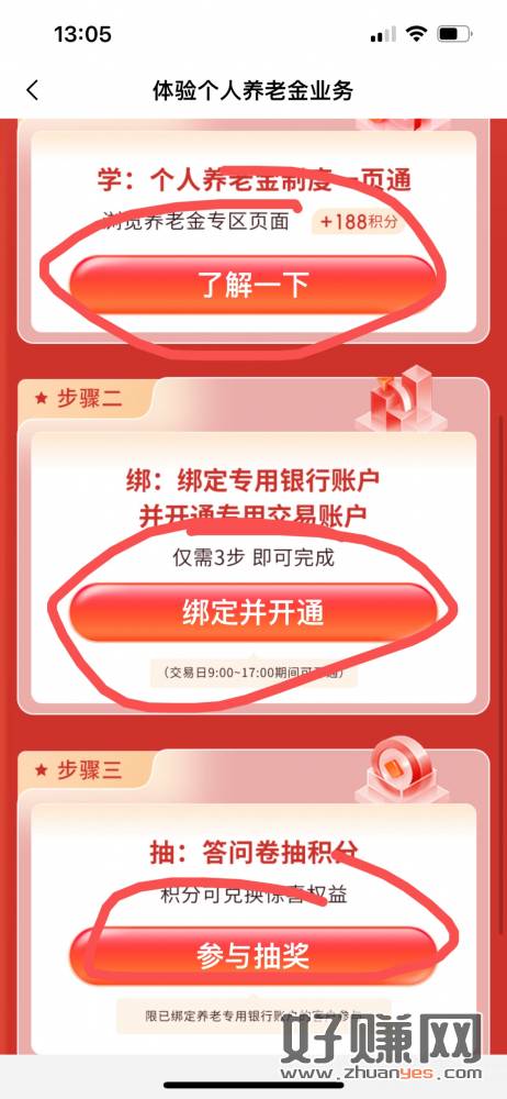 开过养老金账户的打开中金财富app点开我的找到活动中心,第一个养老规划要趁早进去,完成绑定抽奖,积分最少也有两万多,然后兑换一些卡
