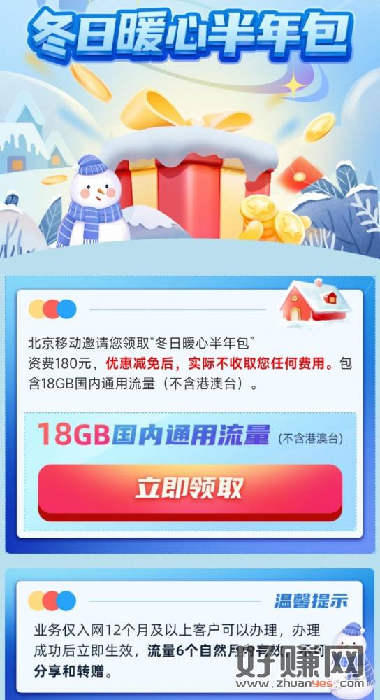 北京移动免费领18G流量