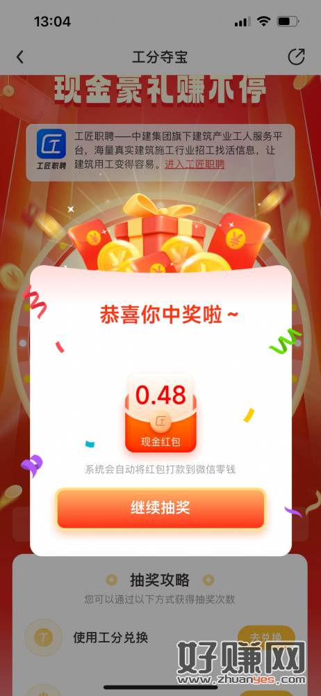 工匠职聘app-横幅工分夺宝,去废机会,抽到还有机会留着下次抽,不必中