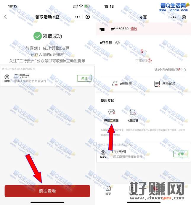 去贵州工行服务e站注册一下就能领取5个e豆,5e豆就能兑换5元微信立减金,不限地区使用