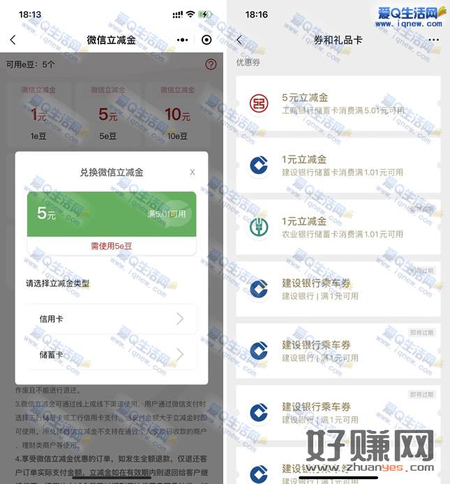 用5e豆兑换5元微信立减金即可,兑换秒到,不限地区使用